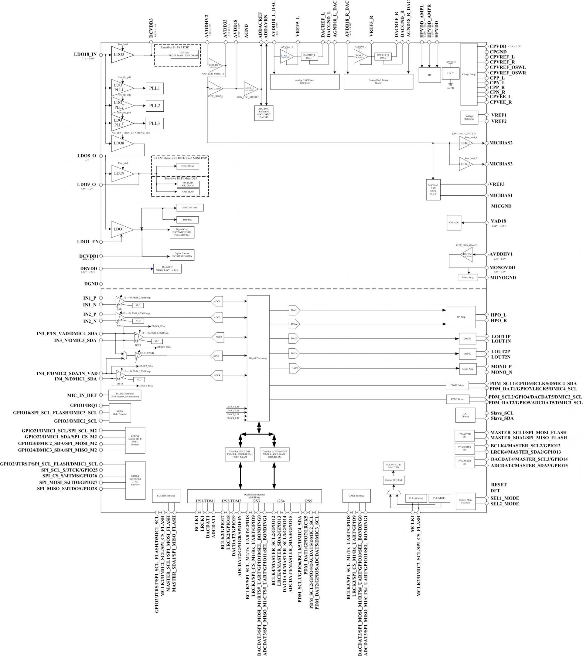 - 192KByte SRAM for Hi-Fi 3 and Hi-Fi Mini DSPs sharing